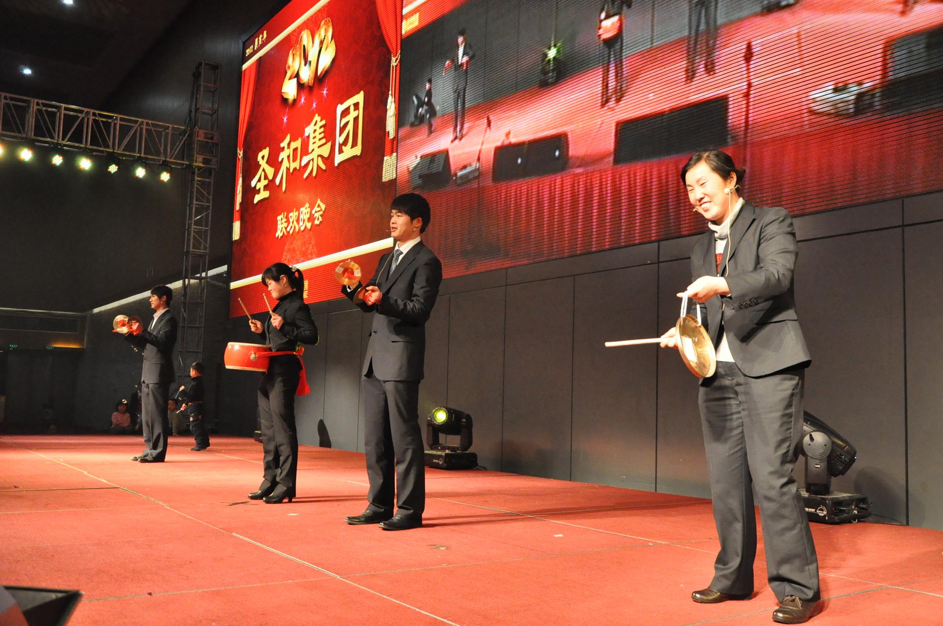 唯美的沙画拉开了演出的序幕,为所有到场人员再次展示了圣和集团一路走来的历程与辉煌成就,也展示了新的希望和新的征程。随后,属龙的员工代表上台,每人一句吉言群龙大拜年;研究院员工的对唱《国家》,让大家一饱耳福;锣鼓叮咚敲起来,药厂的四位员工带来了《三句半》表演,喜迎佳节;精彩的瑞士军鼓演奏,给大家带来了不一样的观赏视觉;药业公司温欢欢带来的独唱《原来你也在这里》,让每位圣和人享受缘分带来的欢乐;现场的近景魔术在晚会过程中,掀起了一阵高潮,魔术的神奇让大家惊奇连连;李绪斌的独唱《青藏高原》,让每一位的听觉得到了洗礼;精彩的“墨舞”表演,把书法与舞蹈结合的淋漓尽致;置业公司马路广的独唱《九百九十九朵玫瑰》、药业公司崔红俊的越剧《天上掉下个林妹妹》,让我们感受到了现代与古典的听觉美。全场暗灯后,荧光舞带来的炫目视觉,让每一位观众感觉到了艺术的独特。常怀感恩之心的人是最幸福的,常怀感激之情的生活是最甜美的。圣和集团对于所有的圣和人,都持有一颗感恩的心,医贸公司代表带来手语合唱舞蹈表演《感恩的心》。最后,王勇董事长带领演出人员合唱了一首《难忘今宵》,在悠扬的旋律和深情的歌声中圆满结束了整场晚会。